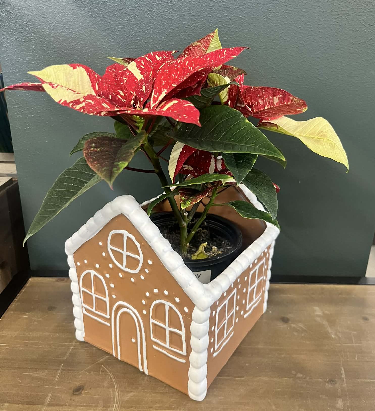 This Gingerbread planter with a holiday houseplant is perfect for a holiday gift! Each planter will include a 4.5″ holiday houseplant of your choice, soil and moss. If there is a specific color of poinsettia that you would like, please let us know.
